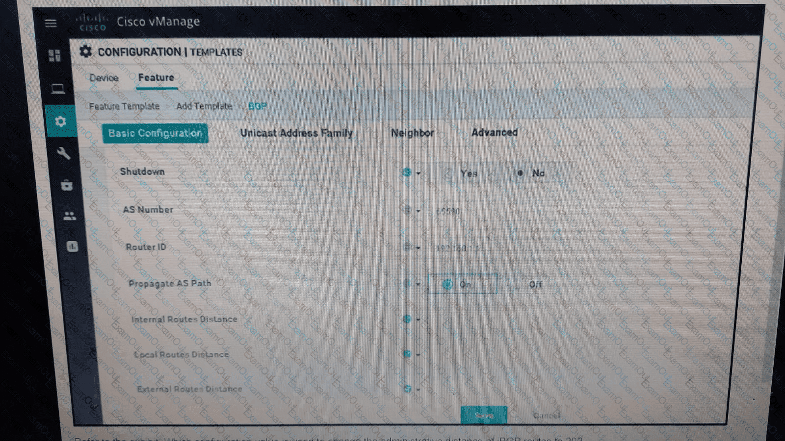 Refer to the exhibit. Which configuration value is used to change the administrative distance of iBGP routes to 20?