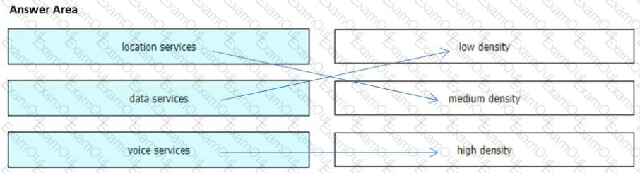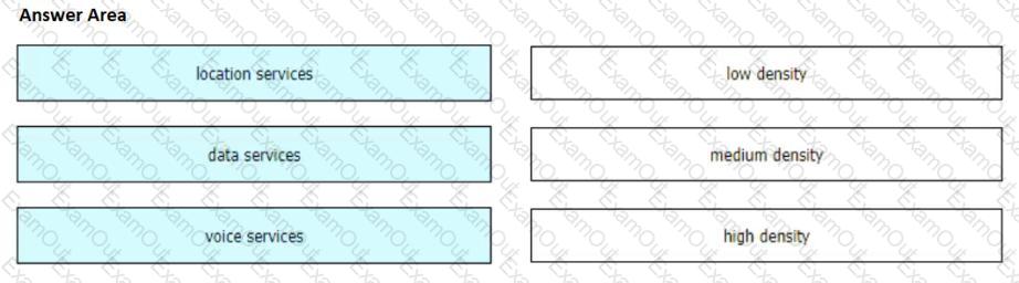 A wireless consultant is creating a wireless design for a multistory building. The building will house several groups that will use the wireless network for different operations. Depending on how the wireless network is used, different wireless approach designs must be taken. Drag and drop the services from the left onto the AP density levels on the right based on the wireless deployment requirements.