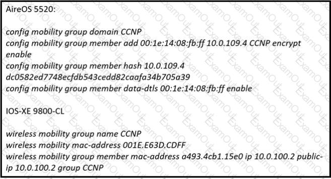 An engineer is about to establish a mobility peer connection between a Cisco Catalyst 9800-CL version 16.10.1e and Cisco AireOS 5520 version 8.8.120.0. The data path between the 9800-CL and AireOS 5520 is down, but its control path is up. Based on the configuration, what is the cause of the issue?