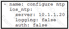 NTP server 10.1.1.20 must be configured on the target Cisco IOS XE device without using