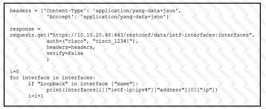 print the IP addresses of all the loopback interfaces. Which statement should be added before the loop?