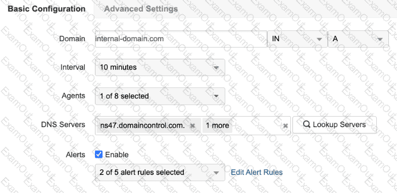A network admin has been tasked with monitoring the IPv6 record and name server resolution times with different agents. Select the two actions that the engineer must take to meet the requirements.