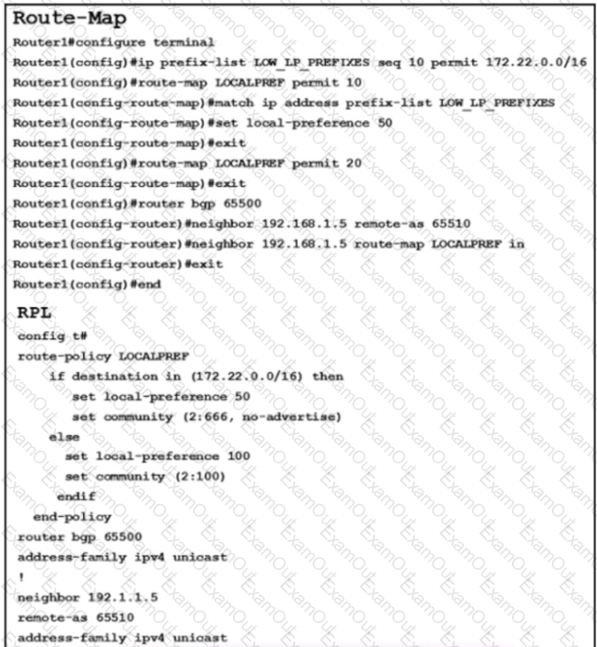 An engineer is comparing these RPL and route map configurations. Which two conclusions will the engineer reach? (Choose two.)