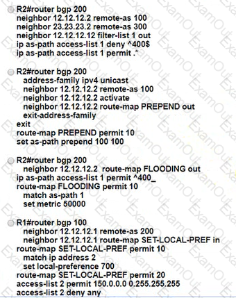 Refer to the exhibit. Excessive routes are flooding from network 150.0.0.0 into AS100. Internet traffic between AS400 and AS300 is working normally. No route controlling mechanism is applied on incoming and outgoing traffic Which configuration resolves the issue?