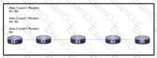 Refer to the exhibit. This network is deployed with all connected links configured to run IS-IS. The routing protocol is enacted globally on each router, and the network engineer expects full routing Information to be shared among all routers. R5 is receiving routes from R4 but is missing routes from R1. Which action corrects the issue so that all routes are shared among the routers?