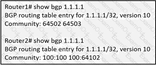 An engineer working on a client’s network is trying to solve the BGP community issue on R1 and R2 routers. After displaying the BGP entries, the engineer notices that both routers still have different outputs. Which action must the engineer perform to any of the routers to correct the problem and get the same output?