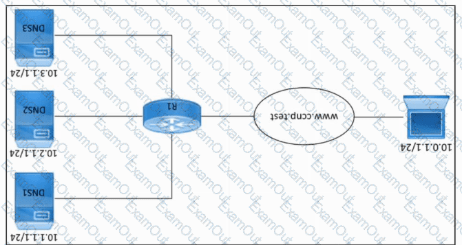 Refer to the exhibit. An engineer must configure Cisco IOS SLB for DNS on router R1 to meet these requirements: