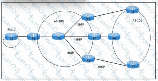 Refer to the exhibit. An engineer working for a private service provider with an employee ID 5207:22:409 must configure iBGP multipath load sharing across the three paths. Which two commands must be run on the PE router? (Choose two.)
