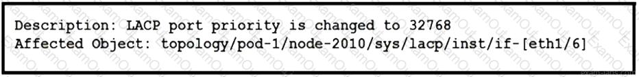 Refer to the exhibit. A Cisco ACI fabric displays this fault. Which set of actions modifies the event to be displayed as a warning in the future?