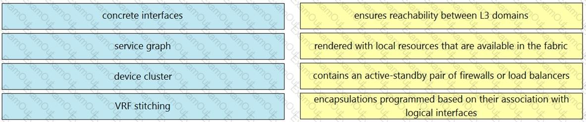 Drag and drop the Cisco ACI Layer 4 to Layer 7 service insertion terms on the left to the correct descriptions on the right.