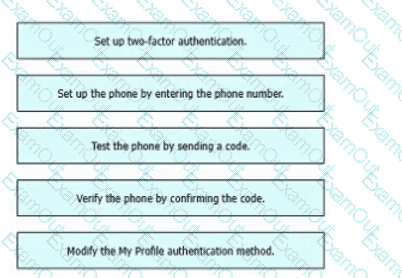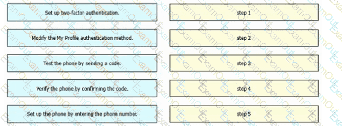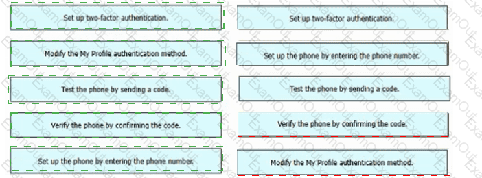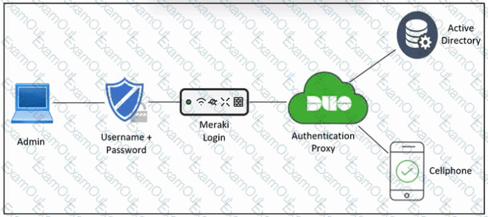 Refer to the exhibit. An engineer must configure multifactor authentication using the Duo Mobile app to provide admin access to a Cisco Meraki switch. The engineer already configured Duo Mobile and received an activation code. Drag and drop the steps from left to right to complete the configuration.