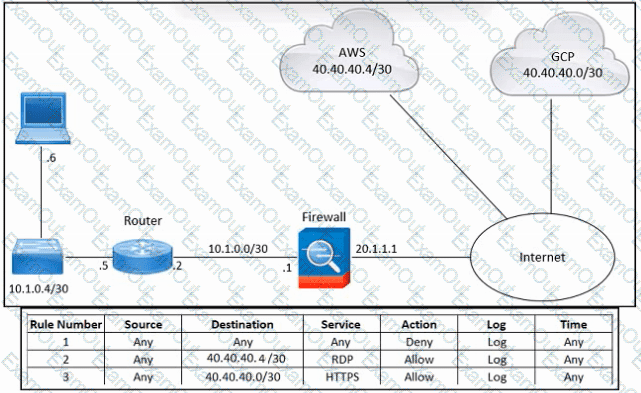 Refer to the exhibit. An engineer must provide RDP access to the AWS virtual machines and HTTPS access to the Google Cloud Platform virtual machines. All other connectivity must be blocked. The indicated rules were applied to the firewall; however, none of the virtual machines in AWS and Google Cloud Platform are accessible. What should be done to meet the requirement?