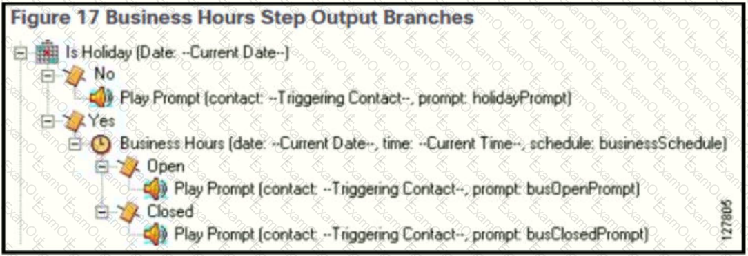 Refer to the exhibit. An administrator is configuring the auto-attendant script for a Cisco Unity Express Integration to Cisco UCME and wants to play the “busOpenprompt” wave file when il is not a holiday. How should the script be configured to accomplish this goal?