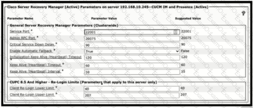 Refer to the exhibit. A collaboration engineer restored a failed primary node of an active/standby IM and presence subcluster. The engineer notices that users fallback to the node occurred. Which action resolves this issue?