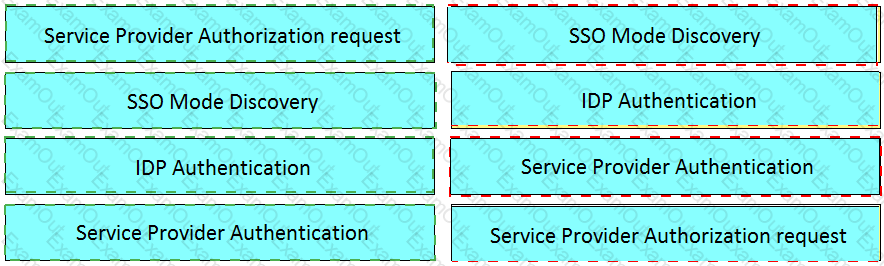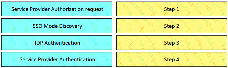 Drag and drop the events for an on-premises Jabber SAML SSO flow from the left into the correct order on the right.