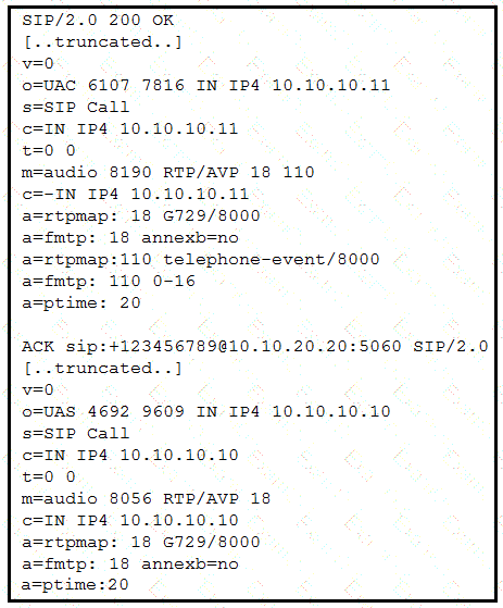 The administrator of ABC company is troubleshooting a one-way audio issue for a call that uses H.323 protocol (slow-start mode). The administrator requests that you provide the IP and port information of the Real- Time Transport Protocol traffic that had the one-way audio call.