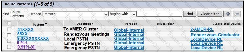 A new solution is configured to support internal, local, and international calling. Calling [+44 1111 1111] from one of the registered internal phones does not work. Local and internal calls seem to work without any problems. The configuration has patterns configured to match the failing dialed number [+44 …. ….]. The other configured patterns show [2…] for internal numbers and [555 …] for local numbers. International numbers use E.164 as recommended. What is missing to make this solution work?