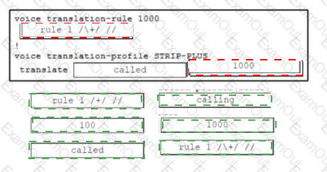Drag and drop the commands from the bottom to the blanks in the code to implement a translation rule to allow only 11 digits to be received over a SIP trunk to a SIP provider. The Cisco UCM is currently sending calls to the Cisco Unified Border Element in E. 164 format. Not all options are used.