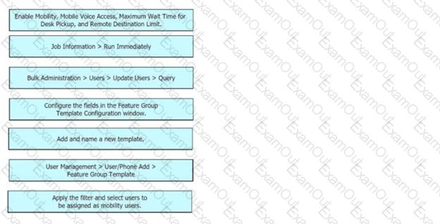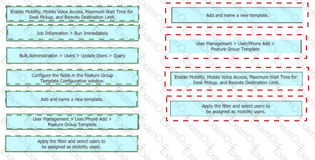 Drag and drop the steps from the left into the order to provision mobility users through LDAP on the right. Not all options are used.