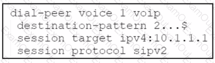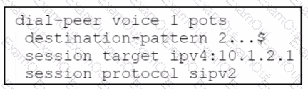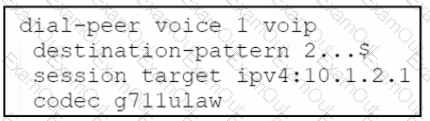 Refer to the exhibit. A company deploys an additional instance of Cisco UCME named CUCME 2 in a branch office. Phones in the main office are register of Unified CME named CUCME 1. Phones in the branch office are registered with their extension to CUCME 2. The engineer needs to configure CUCME the branch office using an 8-kbps codec. Which configuration should be applied to CUCME 1?