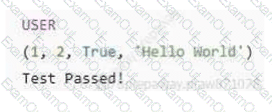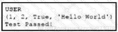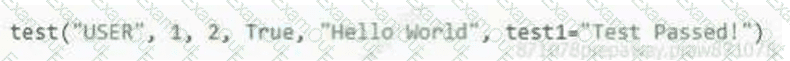 test("USER",1,2,True,"Hello World",test1 ="Test Passed!",test2=2254)
