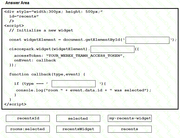 Drag and drop the code to create a Webex Teams Recents Widget in an existing HTML page. Not all items are used.