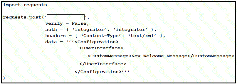 This exhibit is based on the simple Python script to update a Webex registered room device (local IP = 10.10.20.153) with a new custom half-wake message. What is the URL to complete the requests.post() method?