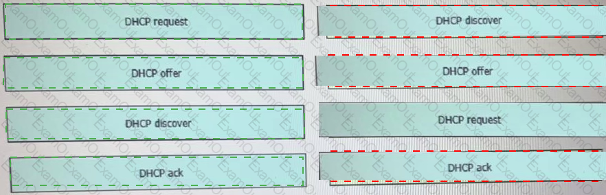 Drag and drop the DHCP messages that are exchanged between a client and an AP into the order they are exchanged on the right.