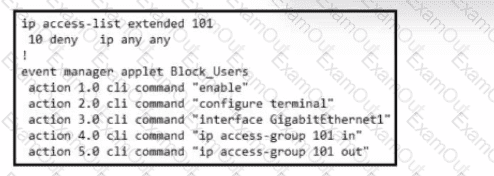 Refer to the exhibit. An engineer builds an EEM script to apply an access list. Which statement must be added to complete the script?