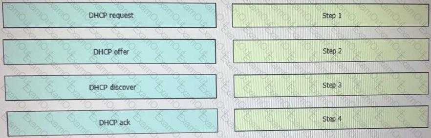 Drag and drop the DHCP messages that are exchanged between a client and an AP into the order they are exchanged on the right.