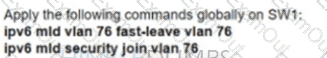 Refer to the exhibit. A network engineer working for a telecommunication company with an employee ID: 4602:62:646 is configuring security controls for the IPv6 multicast group, which is used for video TV. The solution from the engineer should reduce network usage and minimize the leave latency for the user that is connected to VLAN 76. Which two configurations meet this goal? (Choose two.)