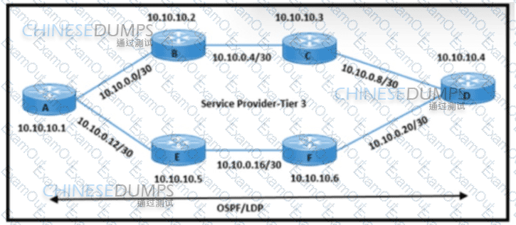 Refer to the exhibit. An engineering team must update the network configuration so that data traffic from router A to router D continues in case of a network outage between routers B and C. During a recent outage on the B-C link, the IGP traffic path was switched to the alternate path via routers E and F. but label forwarding did not occur on the new path. Which action ensures that traffic on the end-to-end path continues?