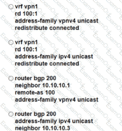 Refer to the exhibit. A service provider engineer Is configuring the connection between CE1 and CE2. AS 200 of the service provider and AS 100 of enterprise ABC should connect using BGP. The engineer already completed the configuration of VRF RT 100:10 of enterprise ABC. Which configuration must the engineer apply on PE1 to meet the requirement?