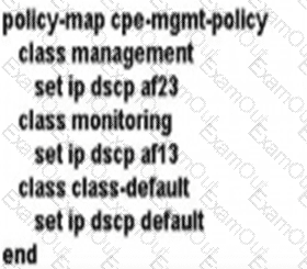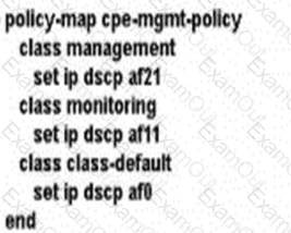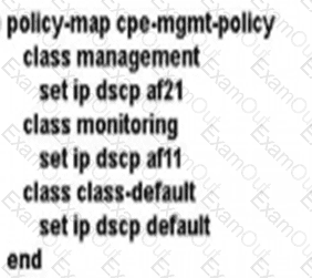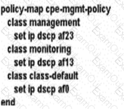 A network engineer Is implementing a QoS policy for outbound management traffic classification and marking on a CPE device with these requirements: