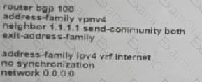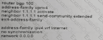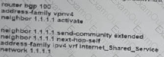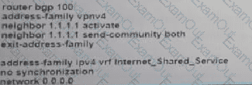 Refer to the exhibit. Which additional configuration must an engineer to the adge router to inject a default router into the MP-BGP address family for the internet_Shared_Services dedicated VRF?