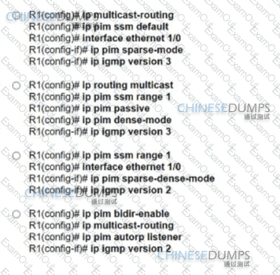 A network operator with an employee ID 4531 26:504 must implement a PIM-SSM multicast configuration on the customer's network so that users in different domains are able to access and stream live traffic. The IGMP version must be enabled to support the SSM implementation. Which action must the engineer perform on R1 to complete the SSM implementation?