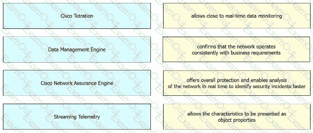 Drag and drop the network assurance concepts from the left onto the corresponding benefits on the right.