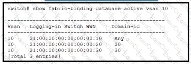 Refer to the exhibit An engineer must configure fabric binding on a Cisco MDS 9000 Series Switch to match the output Which fabric database configuration accomplishes this goal?