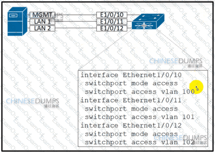 Drag and drop the code snippets from the bottom onto the boxes in the code to complete the remaining Layer 2 connectivity.