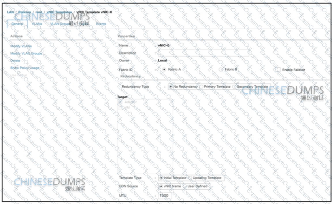 Refer to the exhibit. An engineer associates an ESX service profile to a blade server. The engineer adds a VLAN to the vNIC Template named vNIC-0 by using Cisco UCS Manager. The engineer discovers that the VLAN is missing on the vNIC of the ESX service profile. Which action adds the VLAN to the vNIC?