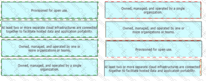 A network engineer is asked to describe the cloud infrastructure models from the perspective of their operation and access to resources. Drag and drop the descriptions from the left onto the appropriate.