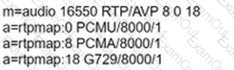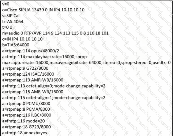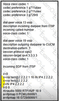 Refer to the exhibit. Which outgoing m-line SDP is sent to Cisco UCM after matching the appropriate dial peers via Cisco Unified Border Element?