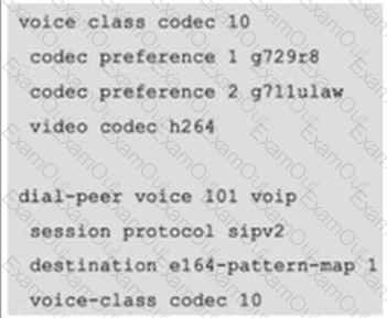 An engineer configures a Cisco Unified Border Element and must ensure that the codecs negotiated meet the ITSP requirements. The ITSP supports G.7llulaw and G.729 for audio and H.264 for video. The preferred voice codec is G.711. Which configuration meets this requirement?