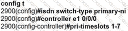 An administrator needs to create a partial PRI consisting of the first seven timeslots available. Which configuration snippet configures the ISDN E1 PRI for this task?