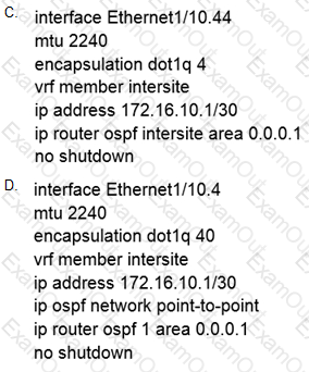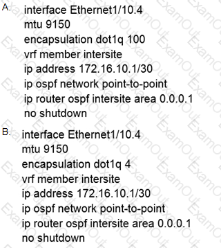 A customer implements Cisco ACI Multi-Site with default MTU settings between two sites. Which configuration should be applied on the interface Eth1/10 on the ISN-1 device?