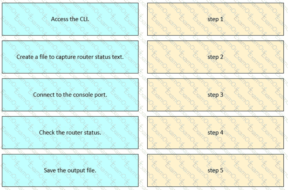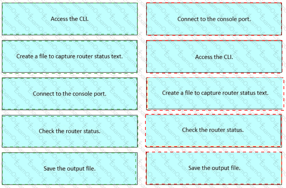 Drag and drop the steps from the left into order to capture the status of a Cisco device.