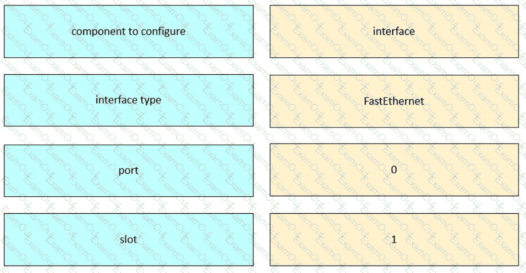 Refer to the exhibit. Drag and drop the command names from the left onto the corresponding elements in the interface configuration mode command structure on the right.