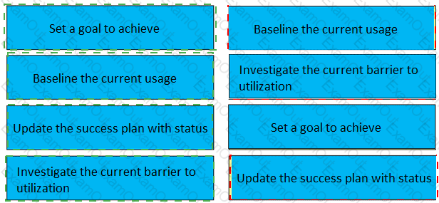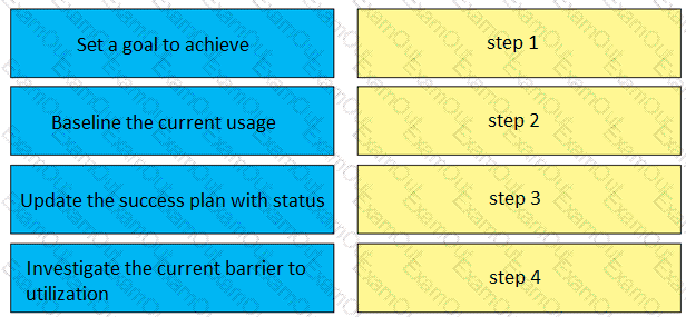 The customer wants to increase the utilization of their video conferencing system. Drag and drop the actions from the left into the correct sequence on the right.