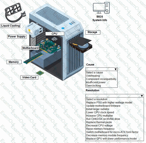 A customer built a computer for gaming, sourcing individual components and then assembling the system. The OS starts up, but within a few minutes the machine locks up. The customer brought the computer to a technician to diagnose the issue.