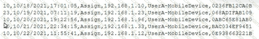 A mobile administrator is reviewing the following mobile device DHCP logs to ensure the proper mobile settings are applied to managed devices: